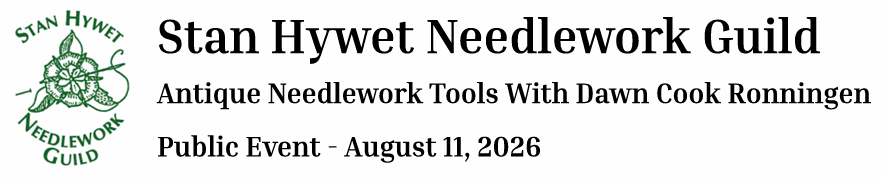 For 2026, the Guild is hosting a special one-day public event in August - Antique Needlework Tools with Dawn Cook Ronningen. This will be a unique opportunity to learn about and see some lovely antique sewing tools while visiting Stan Hywet. A self-guided Manor House tour and lunch will be included with this event.