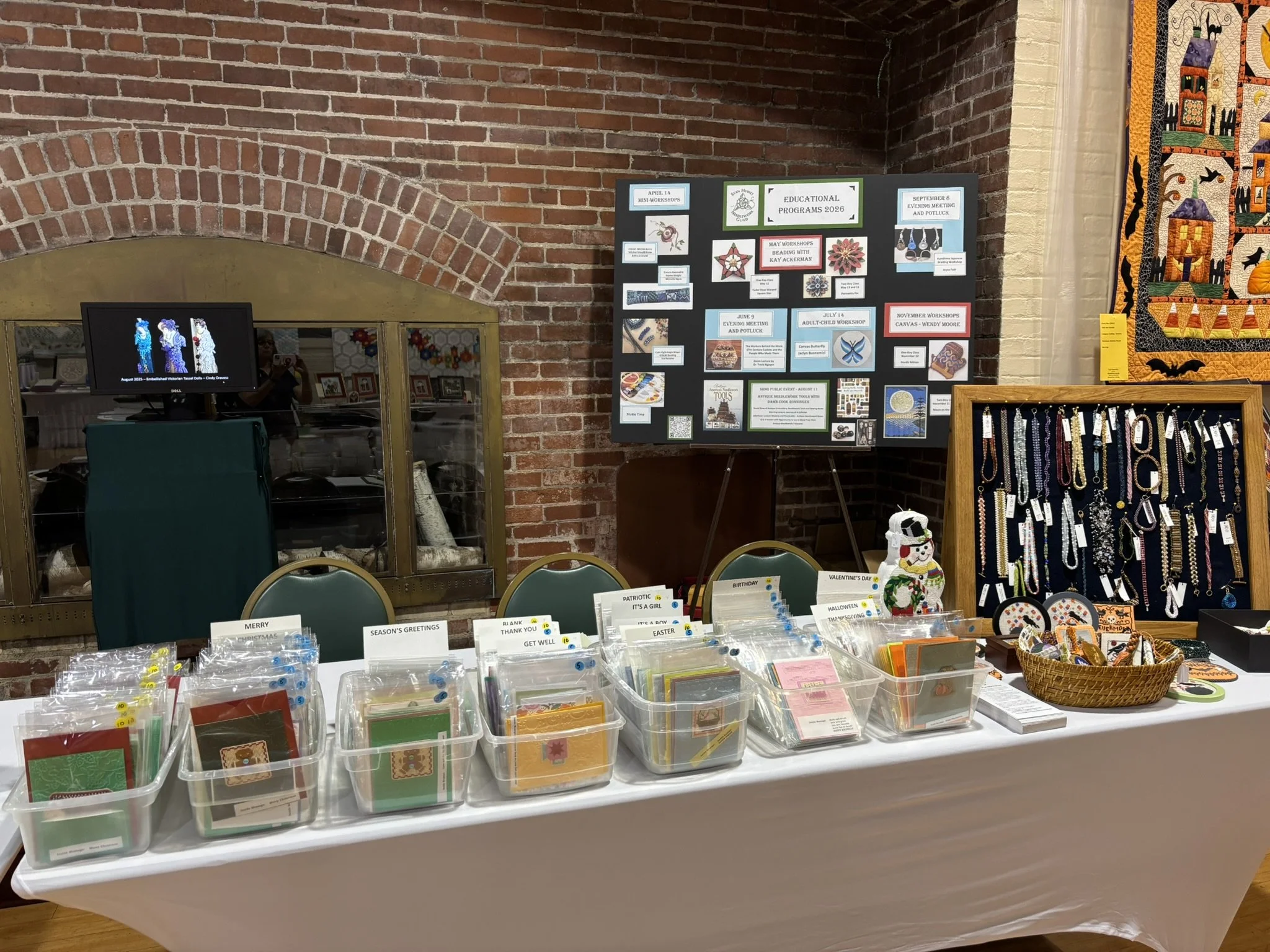 In addition to the cards, there were a small number of fall-themed pieces left over from 2023 and some jewelry items from 2021 available for purchase at reduced prices. All proceeds from sales support the Guild Education Fund.